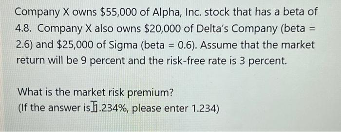 Solved Company X Owns 55 000 Of Alpha Inc Stock That Has Chegg Com